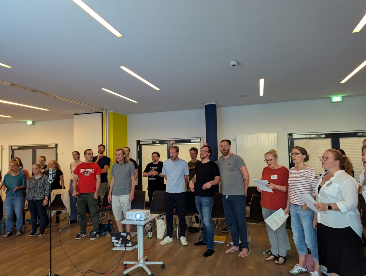 Sänger*innen proben konzentriert, trotz guter Aussicht
